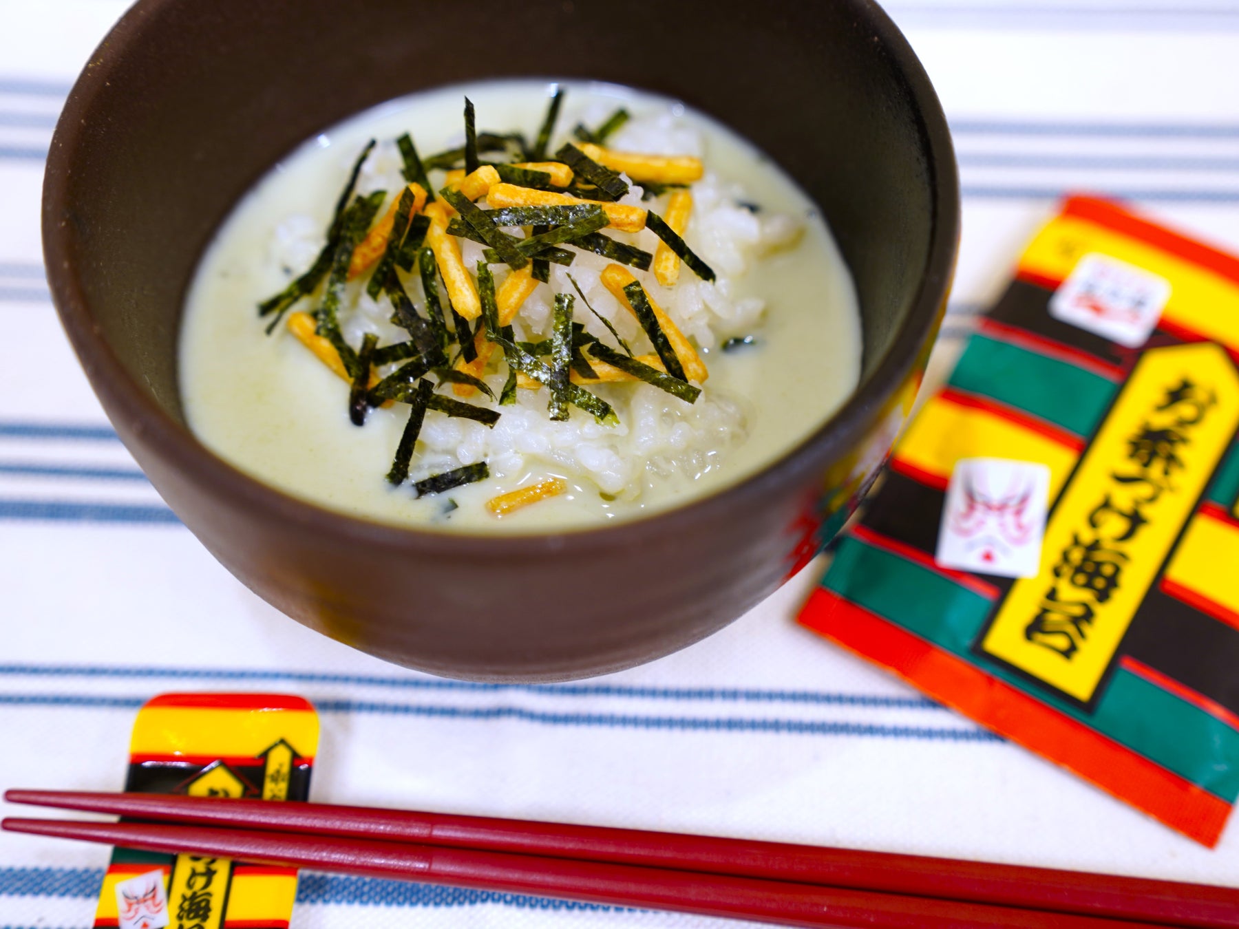 豆乳のコクとお茶づけ海苔の調味顆粒(抹茶・昆布)といい感じで混ざり合ったまろやかな味わいがクセになります。
