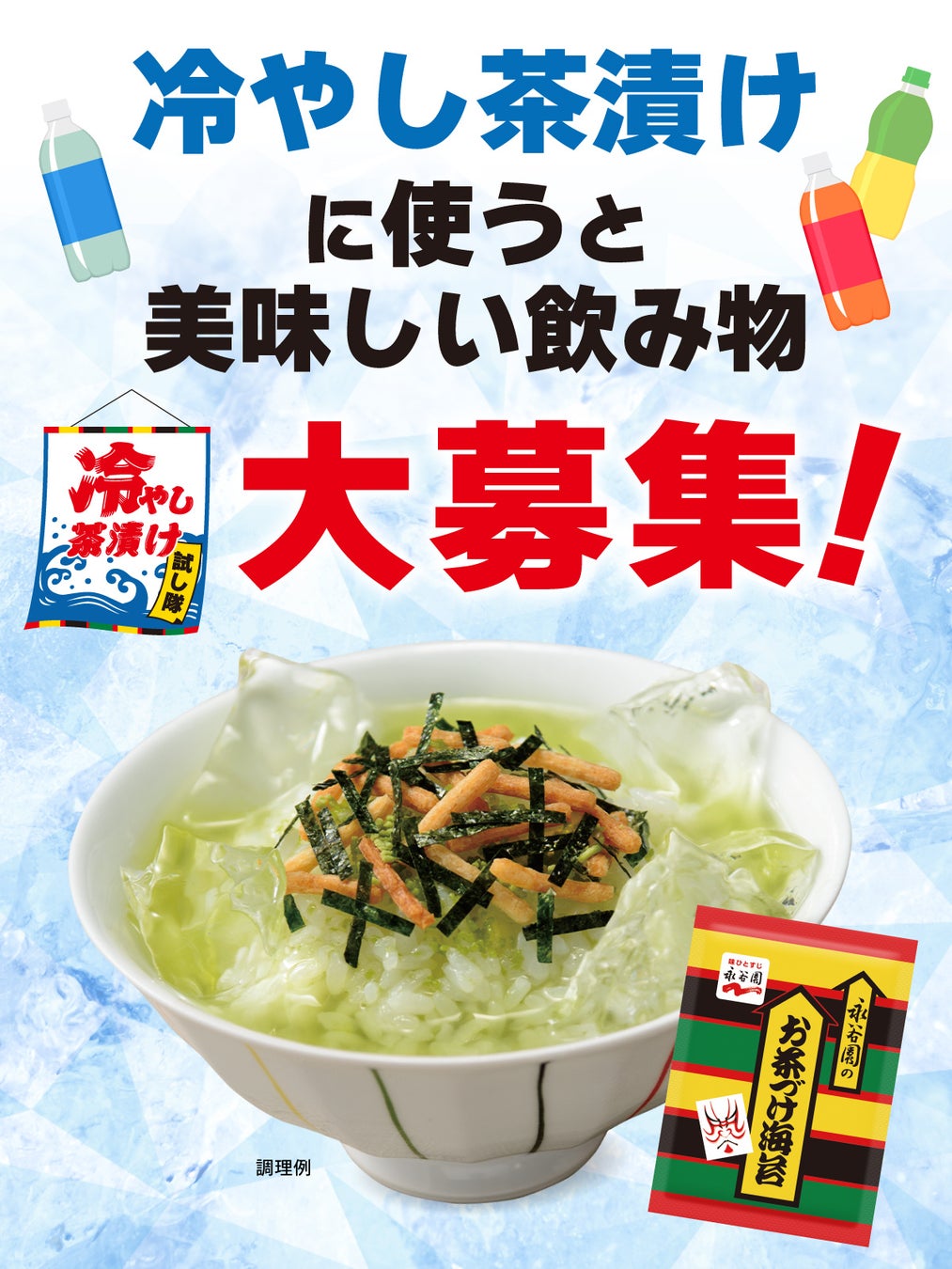 SNSやメルマガ(メルマガは永谷園HPウェブ会員様限定)を通じて、お客様に「合いそうな冷たい飲み物」を募集※し、それを実際に試してみることにしました。
