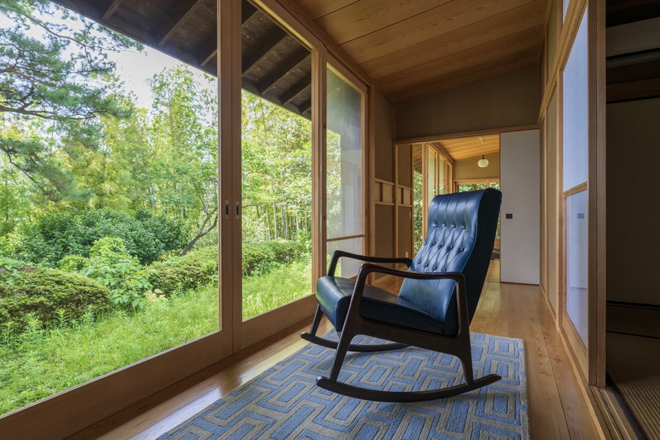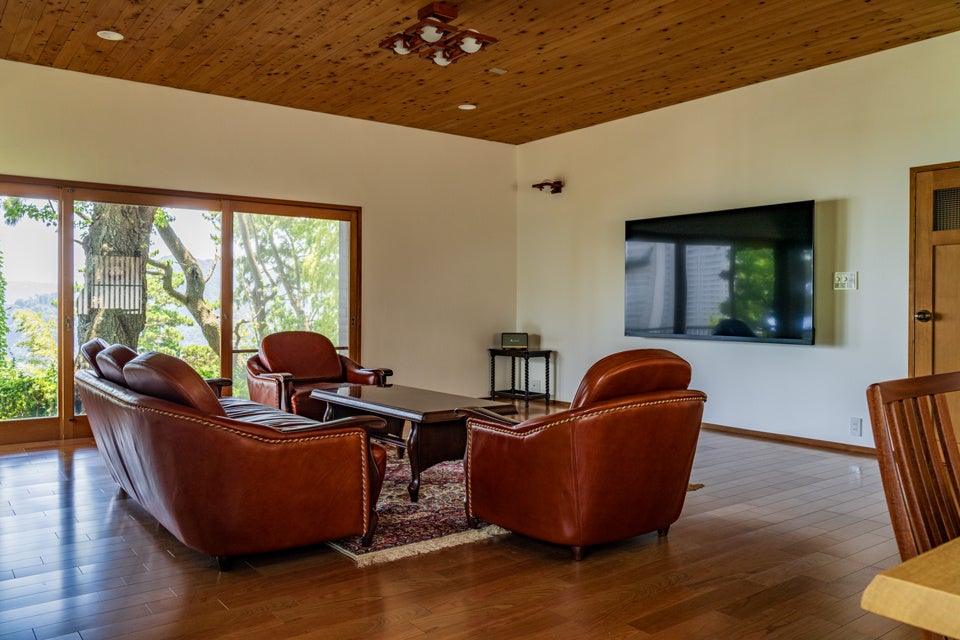 和風平屋建て5LDKの室内は、自然の美しさと和の風情が融合したデザインで特別な空間を演出。24帖の広々としたリビングルームには大きな窓が配置され、自然を感じられるあたたかな光が差し込みます。寝室は畳敷きの和室で日本の伝統的で上質なくつろぎをご提供します。和室から繋がる広縁からは、熱海の優雅な自然と海が広がる景色が楽しめます。