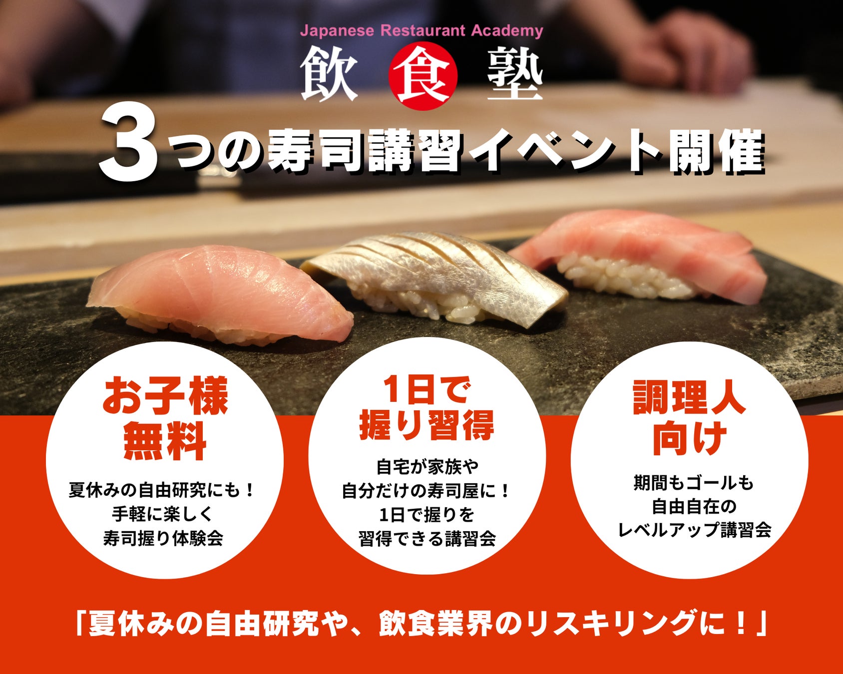 この夏は、子どもから大人まで飲食塾の夏期講習でプロの寿司技術を体験・身に付けましょう!