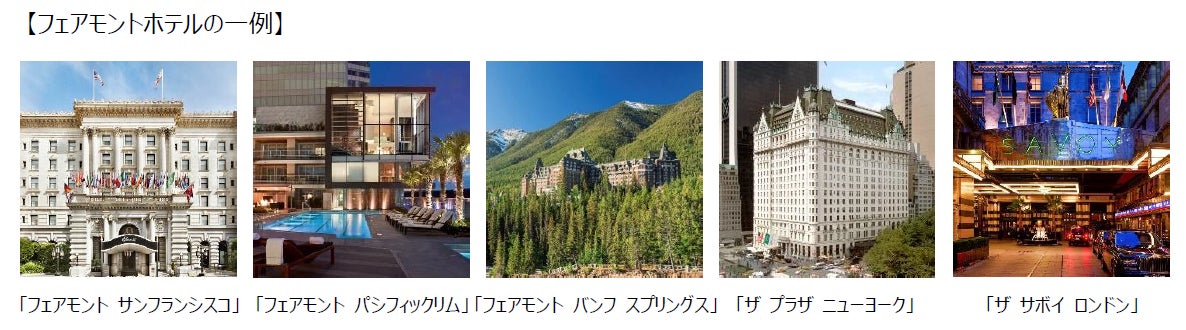 「フェアモントホテル&リゾート」は、特別な出来事を祝う場所であり、歴史が作られる場所です。類をみない存在感、本物の体験、忘れられない瞬間をお届けするランドマークホテルは、1907年の創業以来、「フェアモント」とその目的地を訪れる人々を魅了しています。その特別な場所と永遠に結び付いている象徴的なラグジュアリーホテルの一例として「フェアモント サンフランシスコ」、「フェアモント バンフ スプリングス」、「ザ プラザ ニューヨーク」、「ザ サボイ ロンドン」、「フェアモント ピースホテル上海」があります。魅力的なサービス、壮大な公共スペース、地元の食材を使った料理、有名なバーやラウンジで知られている「フェアモント」は、心のこもった特別な贅沢を約束し、訪れた後も長く記憶に残るホテルです。