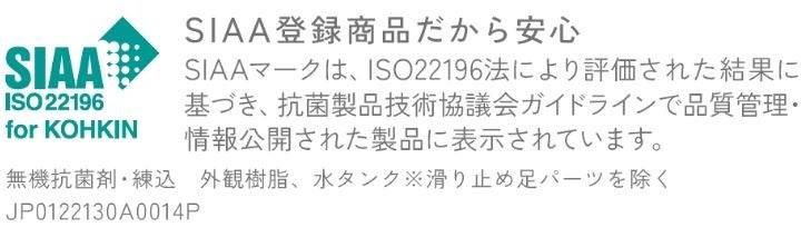 ※SIAAは、抗菌・防カビ・抗ウイルス加工製品に関する品質や安全性のルールを整備し、そのルールに適合した製品にSIAAマーク表示を認めています。