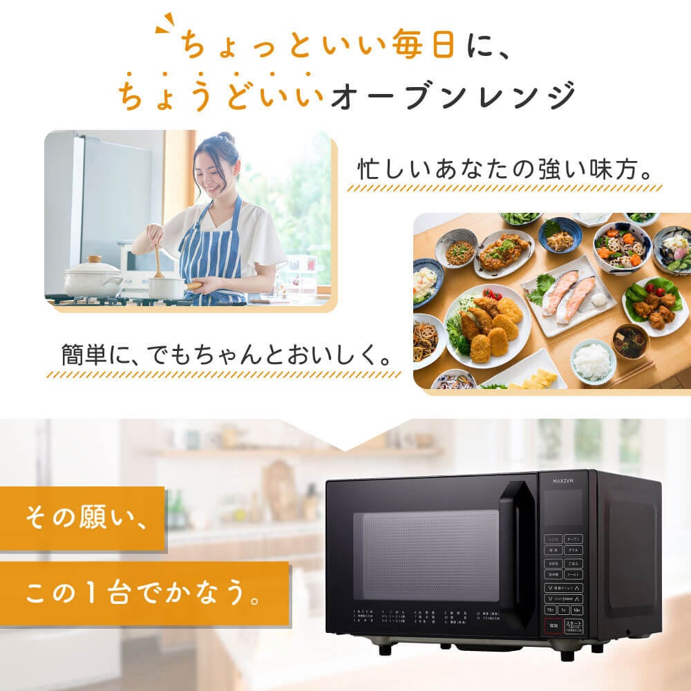 オーブン・レンジ・グリルの機能が1台に詰まった、ヘルツフリーで12種類の自動メニューなど多彩な機能搭載の16Lオーブンレンジを、ジェネリック家電ブランド「MAXZEN」より2026年1月7日から発売