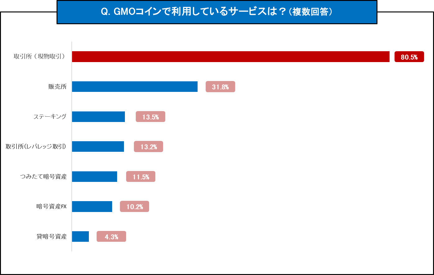 - GMOコインユーザーが一番利用しているサービスは「取引所(現物取引)」
