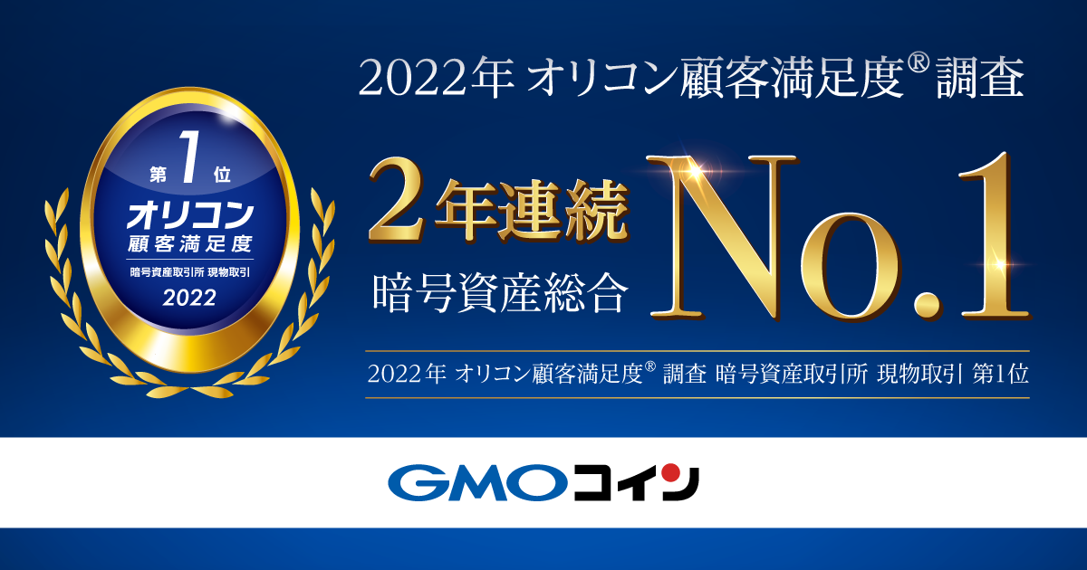 GMOコインでは、ビットコインはもちろん人気のアルトコインも含め20銘柄を取り扱っており、取扱銘柄数国内No.1。※1また、手数料の安さや使いやすさが評価され、満足度も本調査で約7割を獲得。そして、2022年4月1日(金)に発表された「2022年 オリコン顧客満足度®調査 暗号資産取引所 現物取引」において総合第1位※2 を獲得し、2年連続でNo.1となりました。