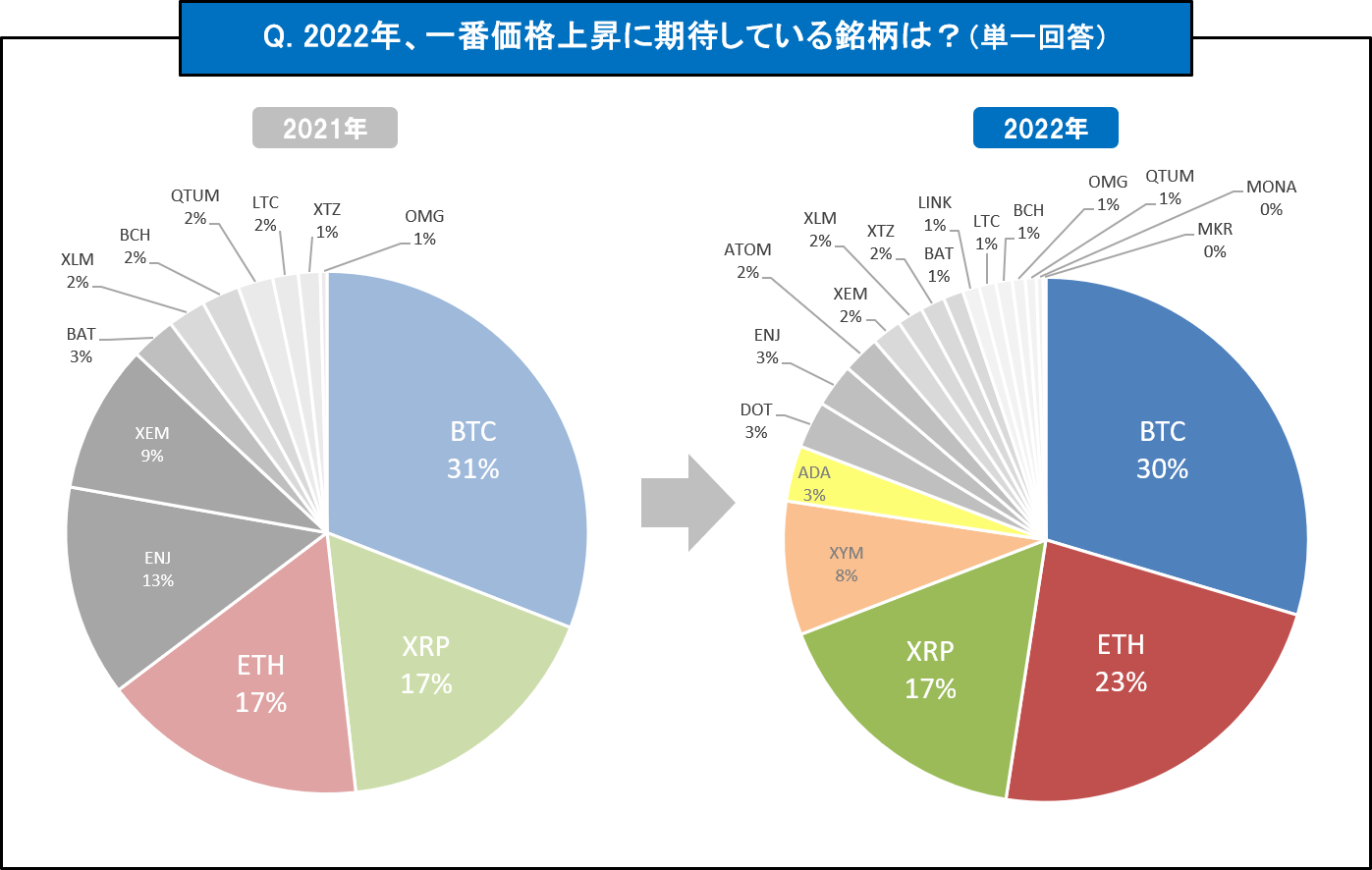 - 2022年、1番価格上昇に期待する暗号資産は昨年同様に「ビットコイン」が第1位!