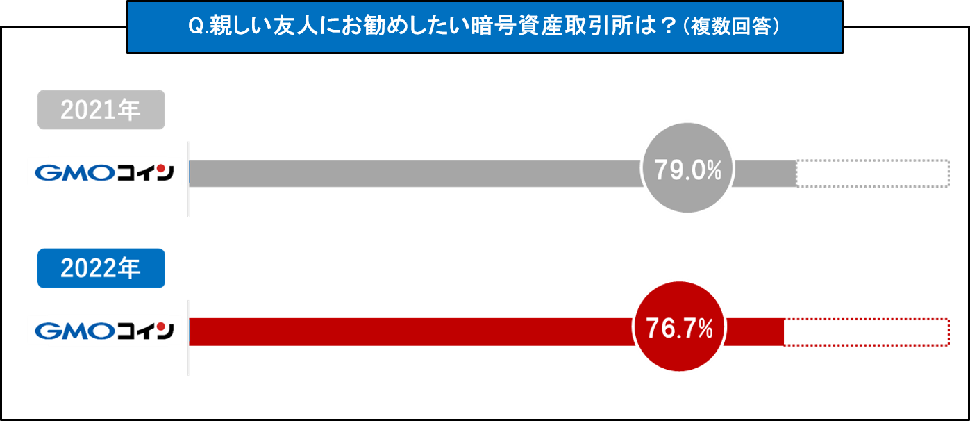 - GMOコインを親しい友人にお勧めしたいと回答したユーザーは約8割!