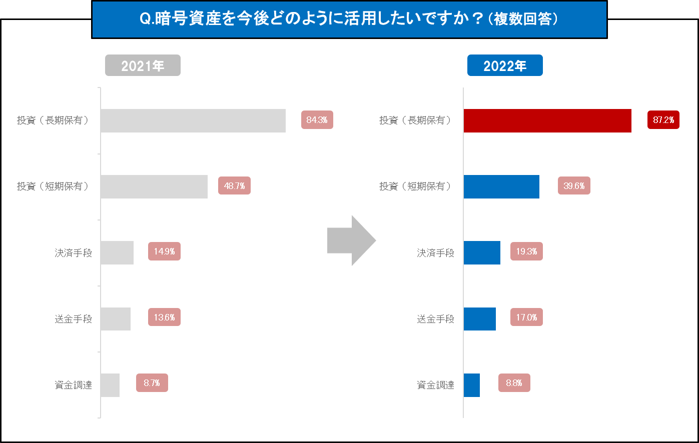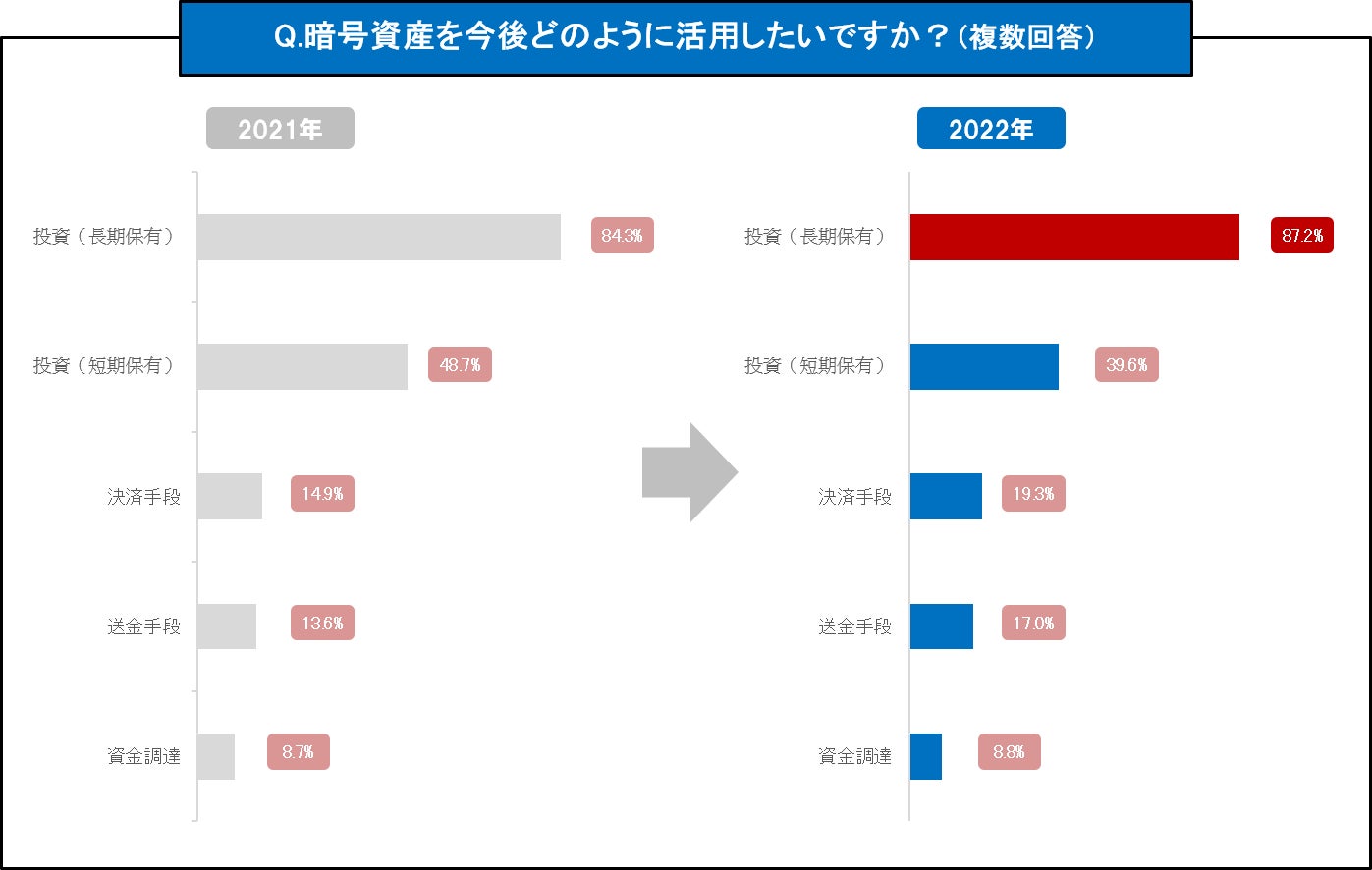 - 8割以上のユーザーは「長期保有」を目的に暗号資産を活用