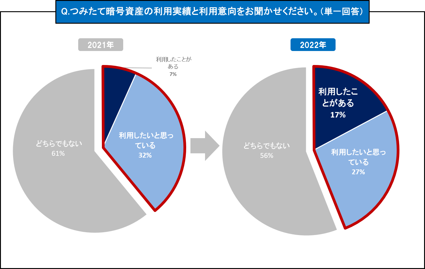- 「つみたて暗号資産」を利用したことがある人が7%から17%に10pt上昇