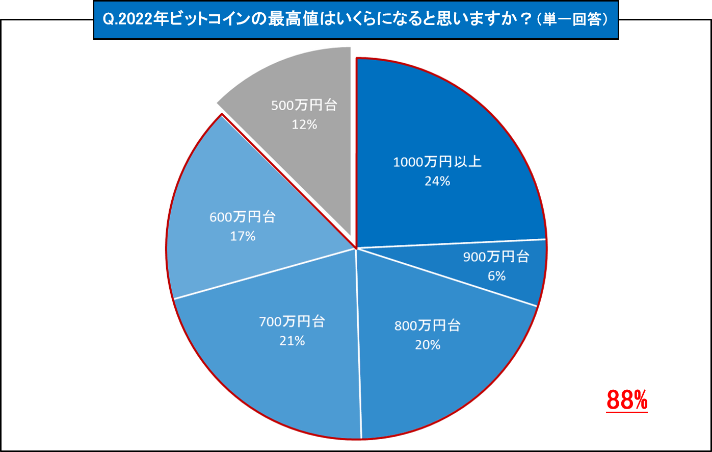 - 2022年、ビットコイン最高値が今より上昇(600万円以上)すると予想している人が約9割!