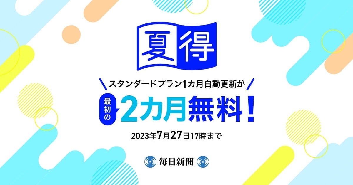 スタンダードプランが最初の2カ月間無料! 毎日新聞デジタルの「夏得キャンペーン」開始