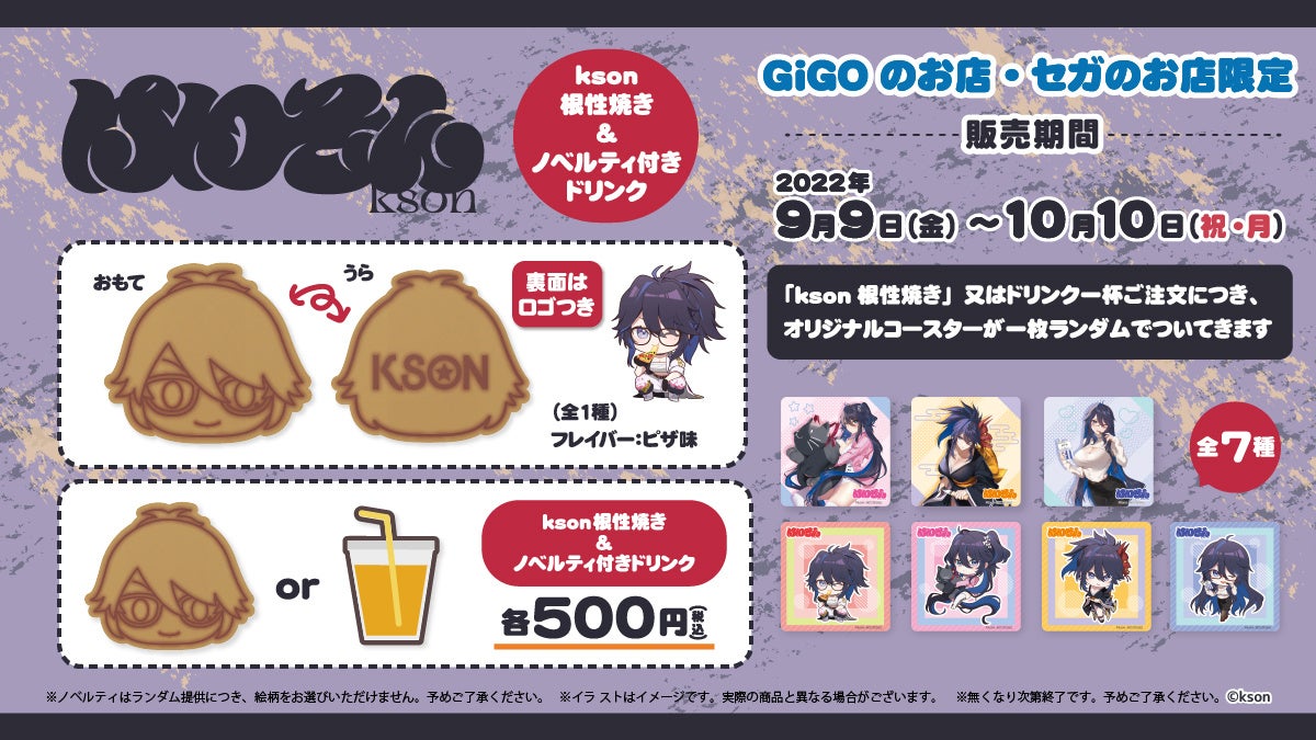※「kson根性焼き」と「ノベルティ付きドリンク」で差し上げるコースターは同じ絵柄です。