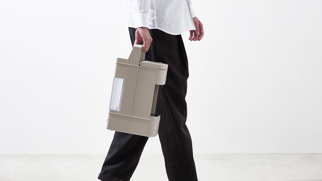 いつでも、どこでも、「最高の一杯」がボタンひとつで味わえる、プロのハンドドリップを再現した「ドリップポッド」のコーヒーシステムを、キッチンやダイニングだけでなくリビングや寝室、屋外など、今までドリップマシンが登場しなかった場所で利用できるよう、マシン上部のキャリーハンドルが特徴的なデザインです。マシンのパイピングや曲線など細部までデザインにこだわり、置いておくだけでいい、毎日見ても飽きない、そんな長く一緒にいられる暮らしのパートナーのような、普遍的な佇まいのコーヒーマシンを目指しました。