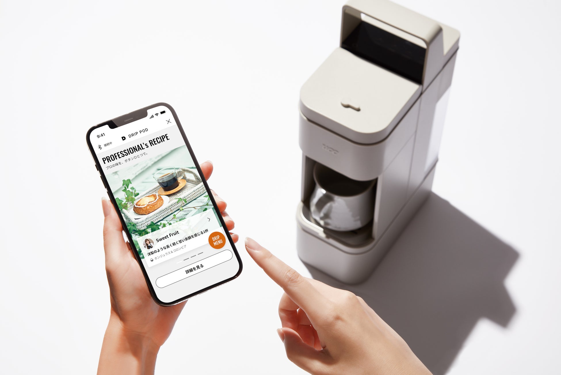 DRIP POD YOUBIは、空間・プロダクトデザイナーの二俣公一氏がマシンデザインを手掛け、「農園からこだわった、まっすぐな一杯」を、使いやすさと心地よさ、どちらも妥協せず、どこでも誰とでも楽しめるコーヒータイムが、日々の暮らしをより豊かにするような体験を提供できるよう、開発しました。またUCC公式スマートフォンアプリ「COFFEE CREATION」とBluetooth連携することで、マシン機能のみでできるレシピと合わせて100通り以上の飲み方が楽しめます。