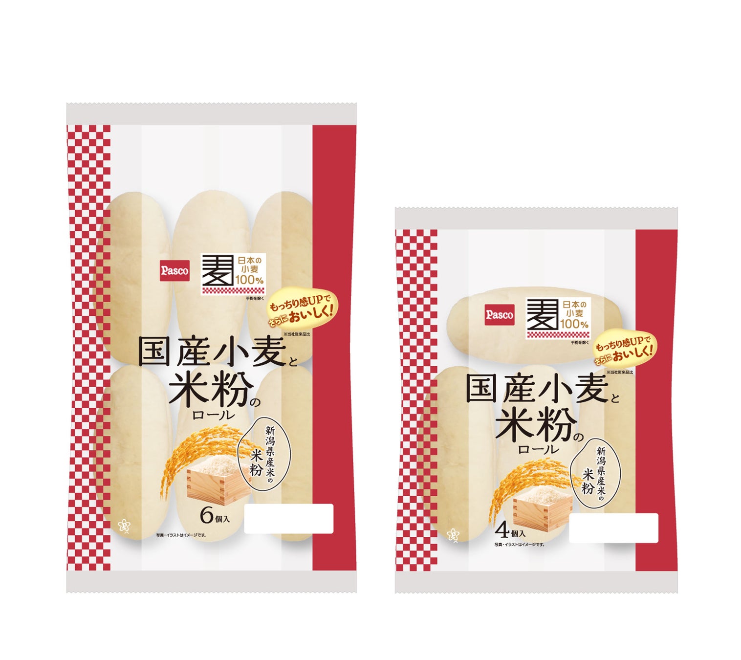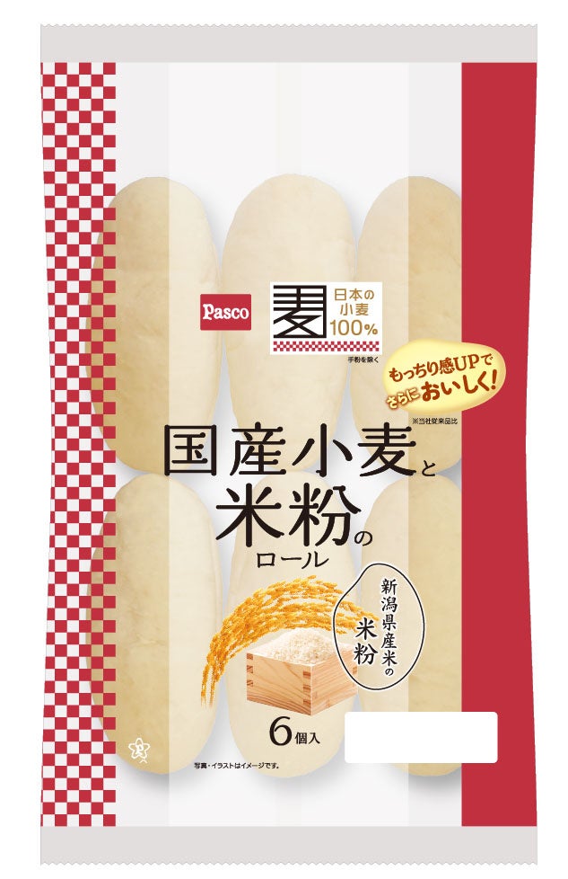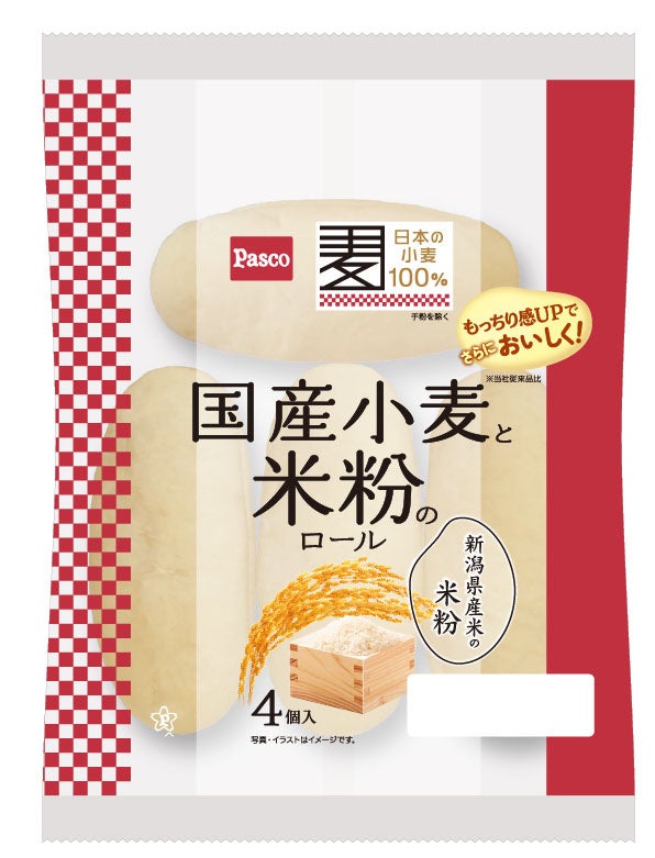 「国産小麦と米粉のロール」は、国産小麦の小麦粉と新潟県産米の米粉を使用したもっちりとしたロールパンで、食料自給率向上への貢献を目指すPascoの“国産小麦シリーズ”の中でも特に高い人気を誇る商品です。今回は原材料の配合を見直し、これまでご好評いただいていた「もっちり感」をアップさせました。また、使用している米油の配合量を1.5倍(当社従来品比)にすることで、より「しっとり感」を味わえるようになりました。