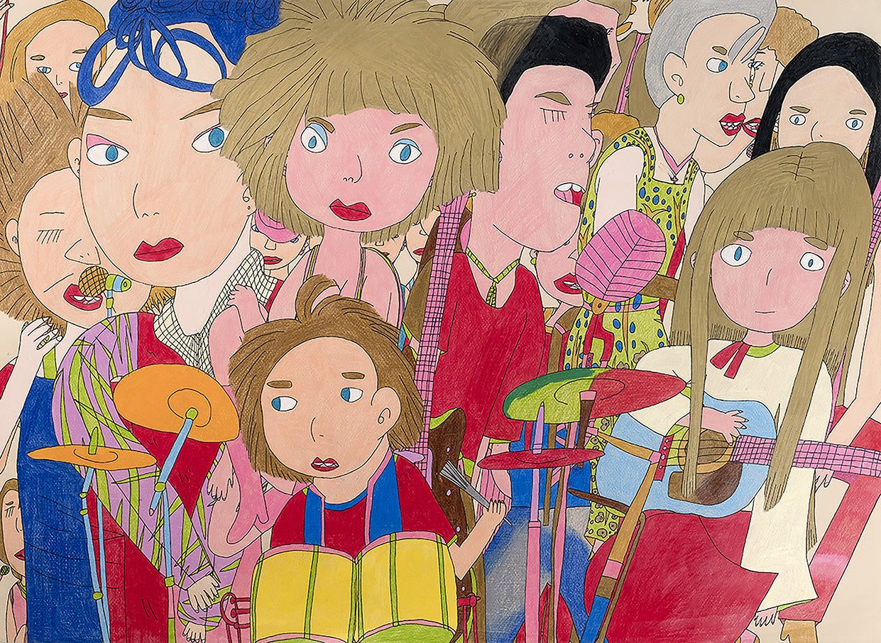 2006年から『やまなみ工房』に在籍。彼女は絵画、陶芸とその日やりたい創作に取り組む。絵画においては人、動物、風景等どんなモチーフも迷いなくペンを走らせる。全体像を描くと、ピンク、水色と大好きな自分色に染めていく。モノクロの作品では鉛筆一本を用いて、描いている。濃淡を使い分け塗り進めると、真っ白だった画用紙が次第に漆黒に艶めいていく。モチーフとなったものが、彼女の手によって新たな表情を見せ再構築された作品へと変わる。