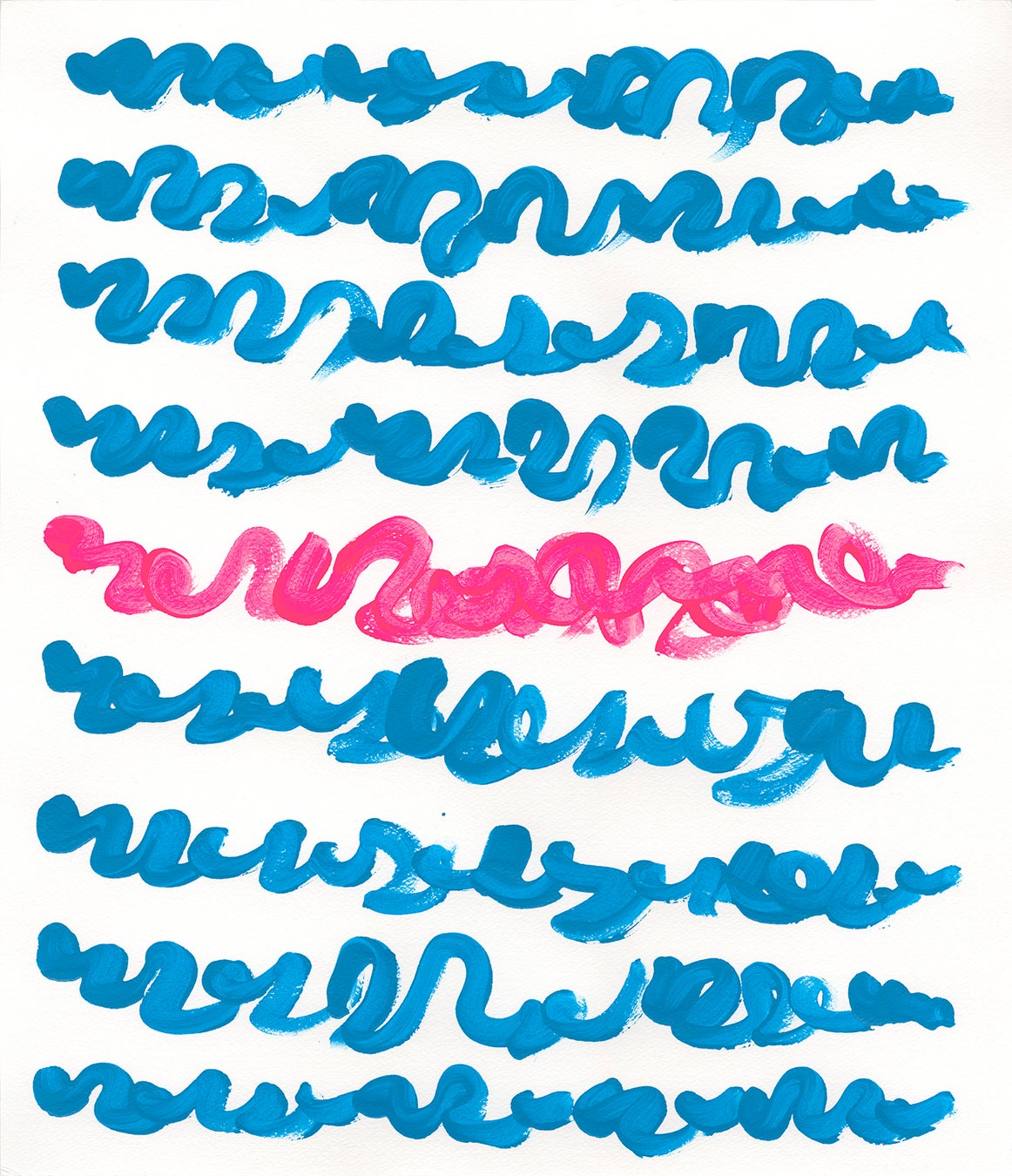 東京都内特別支援学校在学中。お寿司とゲーム(マリオカート)と、お料理すること、絵を描くことが大好き。シール、スタンプ、ドリッピングなど様々な絵作りをするなか、一番気に入っているものは、古代なのか宇宙なのか未来の言語なのか、彼女なりのタイポグラフィをノート一面に書き綴っているものである。