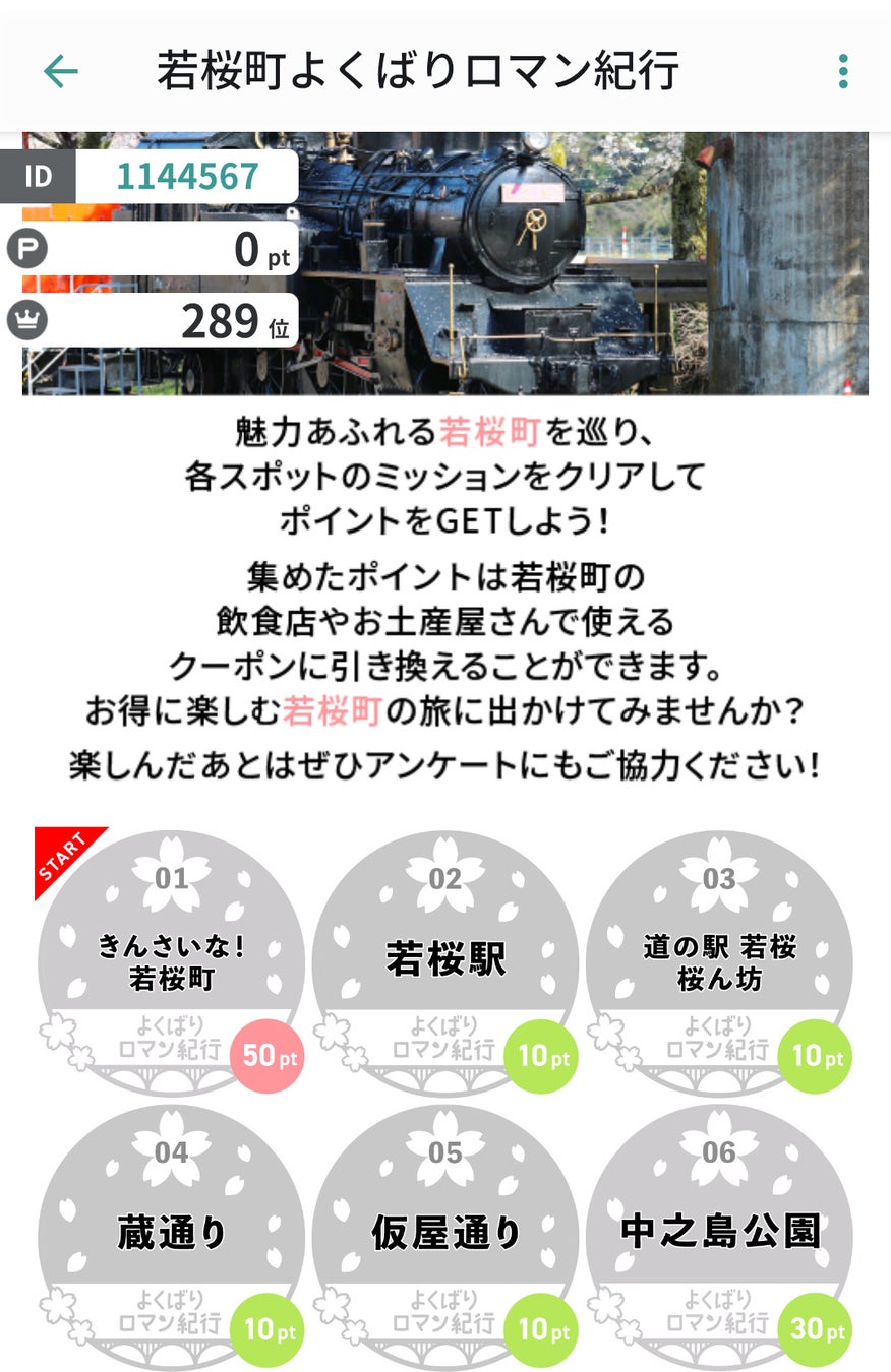 『MEGURUWAY』を使った若桜町 旅ガイドスタンプラリー |