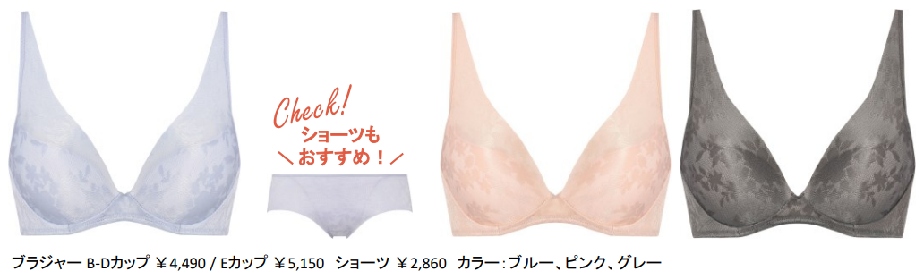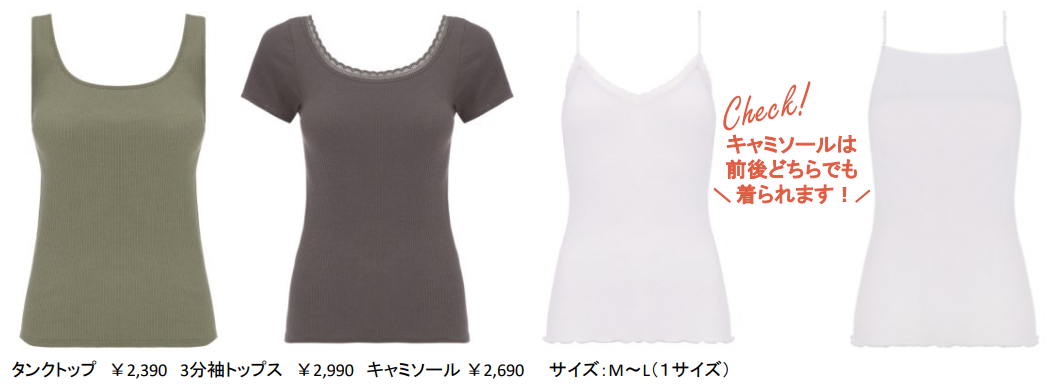まるで雲のように軽くやわらか!アモスタイルの最新のここちよさを体感できる、Tシャツブラタイプの「雲ふわりブラ」や、クラシカルなローズ柄のレースを贅沢に使ったブラ&ショーツセット「クラシカルレース」。そして、気候が急変することも多い旅先、備えておくと便利な「温調インナー」も。