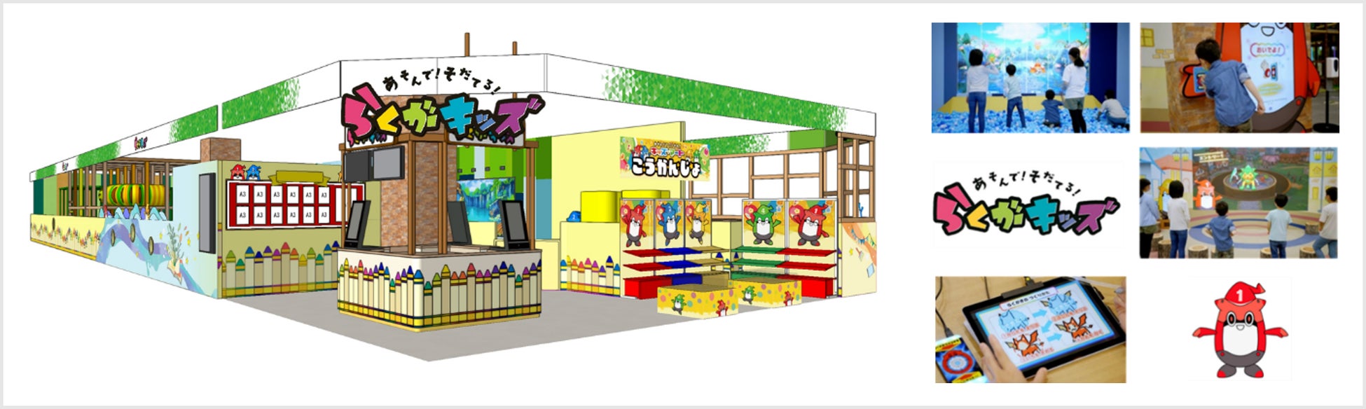 「らくがキッズ」はデジタル「らくがき」とフィジカル「アスレチック」をテーマに、12歳までの子どもたちが楽しく遊びながら身体を動かすことができる施設として、たくさんのお子様・ご家族連れにご利用いただいており、「アリオ蘇我店」は、全国7店舗目となります。
