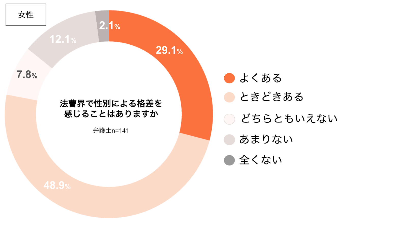 ■ 約6割が法曹界で性別による格差を実感、女性弁護士では約8割