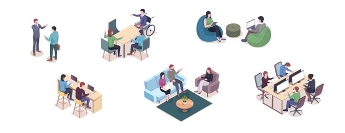 ABWはエリアごとに段階的に導入することができます。例えばラウンジ、リフレッシュルーム、会議室や執務室の一部などにまず導入します。その際に、もしも従業員の方々のニーズにマッチしないオフィス家具があれば、再度買取るというのがABWのトライアルです。
