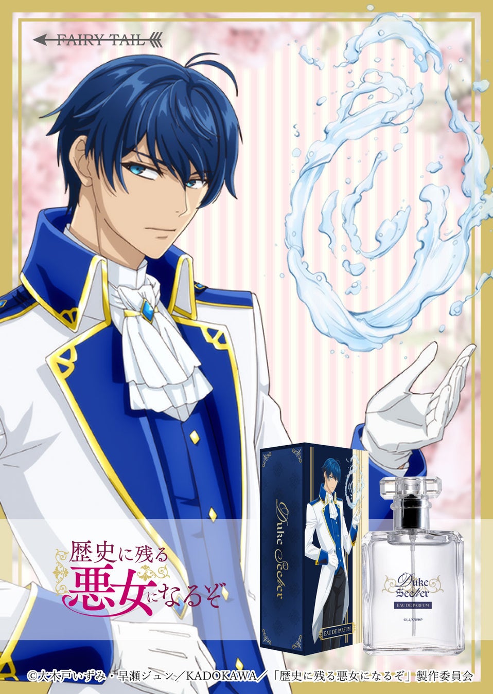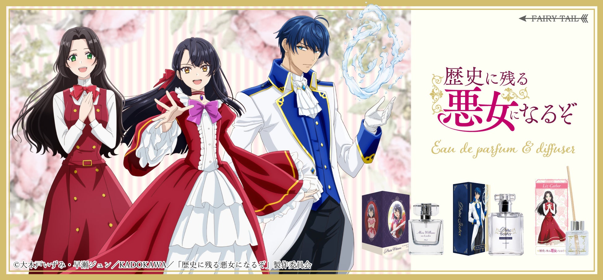TVアニメ『歴史に残る悪女になるぞ』よりアリシア、デュークをイメージした香水と、リズをイメージしたディフューザーが登場!