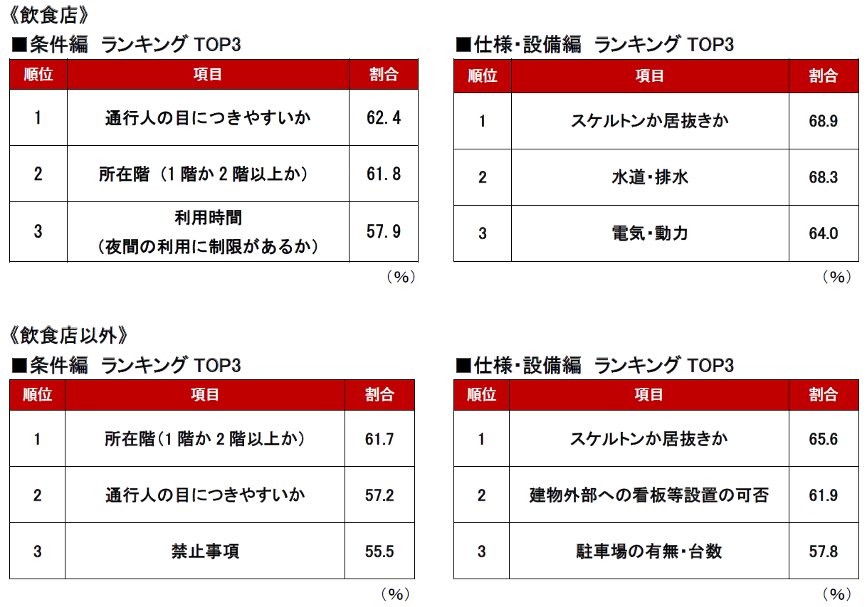《飲食店以外》 条件編 第1位 「所在階(1階か2階以上か)」 61.7%