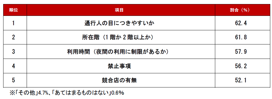 <調査結果>「貸店舗を選ぶ際にチェックするべきポイント」ランキング