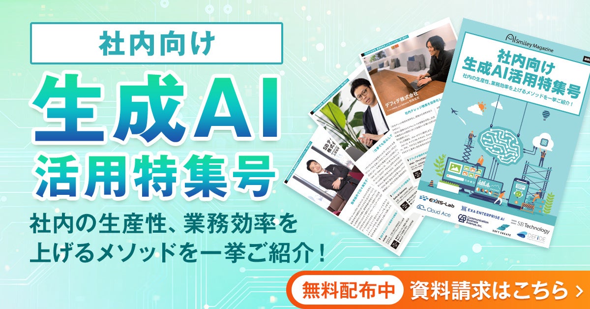 AIポータルメディア『AIsmiley』を運営する株式会社アイスマイリー(東京都渋谷区、代表取締役:板羽晃司)は、AI導入推進の一環として、「社内向け生成AI活用」のユースケースをまとめたWeb雑誌「社内向け生成AI活用特集号」を2024年9月20日(金)から配信開始しました。