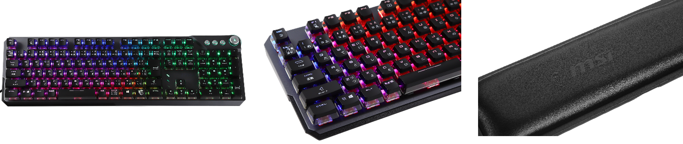 世界最軽量クラスの35gの荷重で軽快なタイピングが可能なMSI SONIC REDスイッチを搭載 付属の形状記憶リストレストで手指への負担を軽減できるゲーミングキーボード