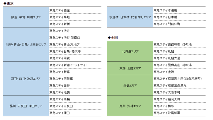 店舗数:30店 客室数:4,904室(東急ステイレジデンス除く)