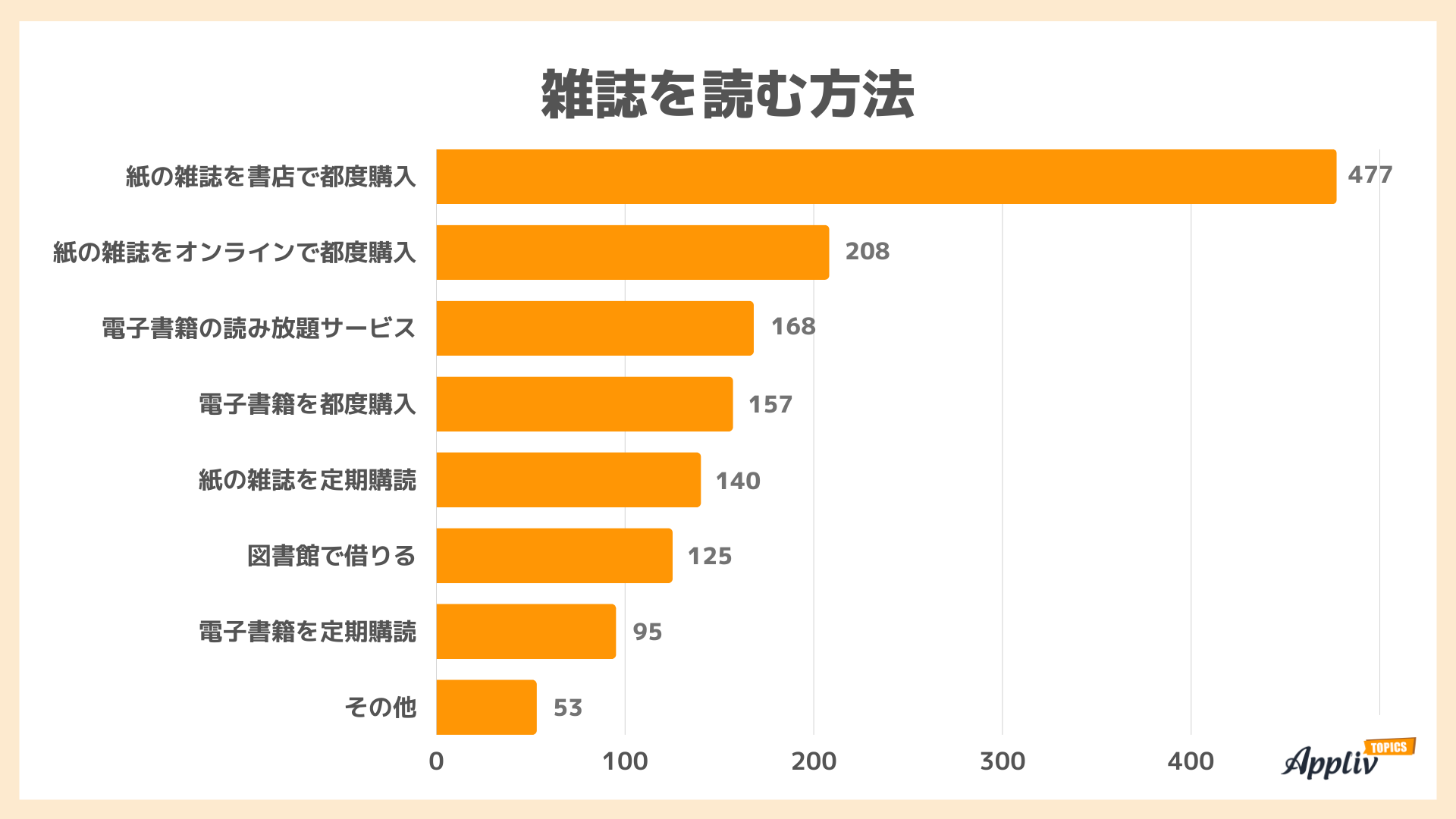 雑誌を読む方法は「紙の雑誌を書店で都度購入」が最多。