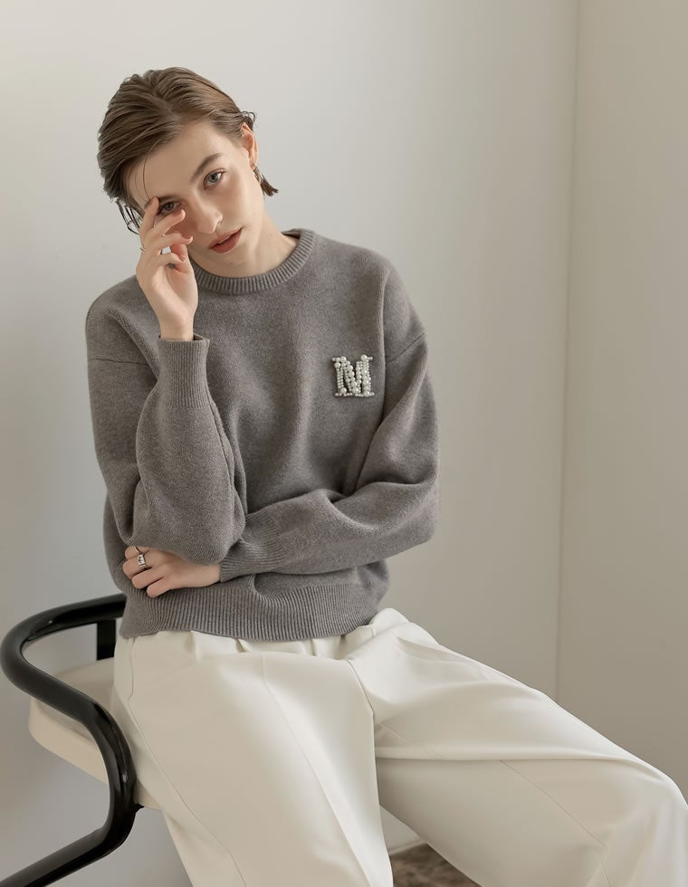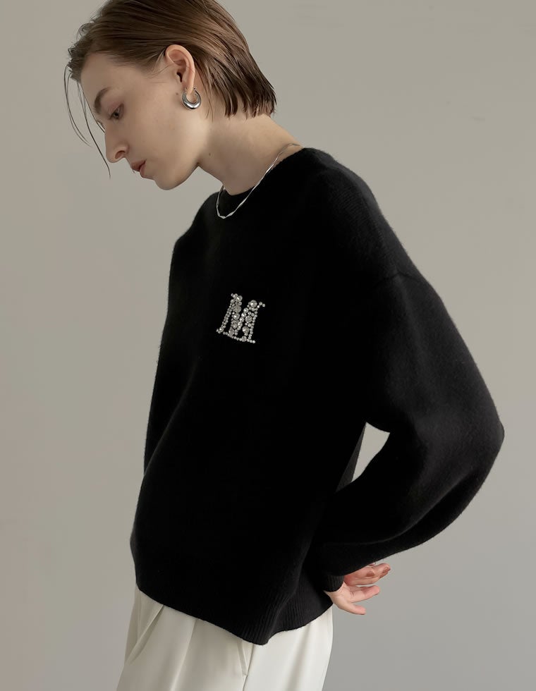 ◆ 胸元のMビジューで魅せるプレミアムなニット ◆