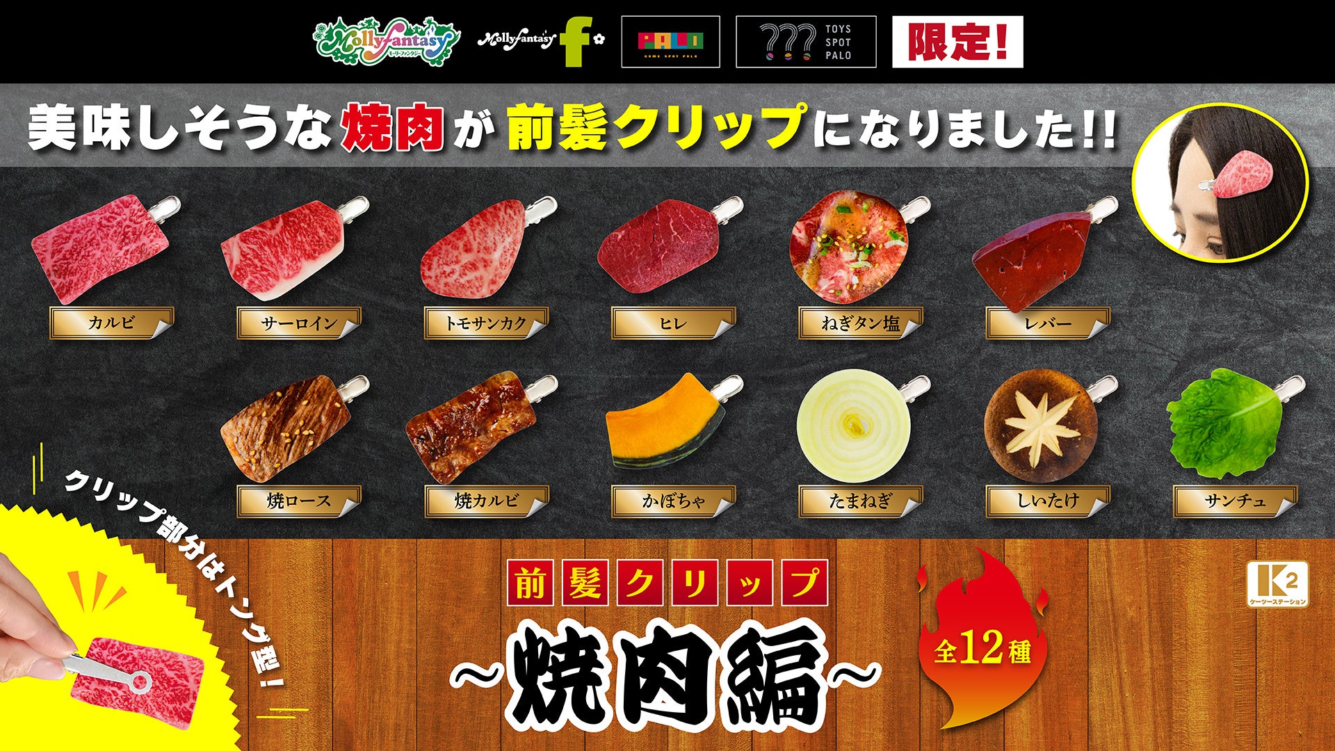 株式会社イオンファンタジー(本社:千葉県千葉市、代表取締役社長:藤原徳也、以下、当社)は、『前髪クリップ ~焼肉編~』を、アミューズメント施設「モーリーファンタジー」「PALO」、カプセルトイ専門「TOYS SPOT PALO」などに設置する当社オリジナル完全キャッシュレスカプセルトイマシン「かぷえぼ」限定のカプセルトイとして1月13日(金)より順次展開いたします。