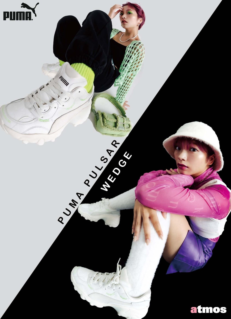 この度、女性向けのスニーカーセレクトショップatmos pinkとグローバルスポーツブランドPUMAのコラボレーションスニーカーPULSAR WEDGE を9/16(FRI)発売いたします。