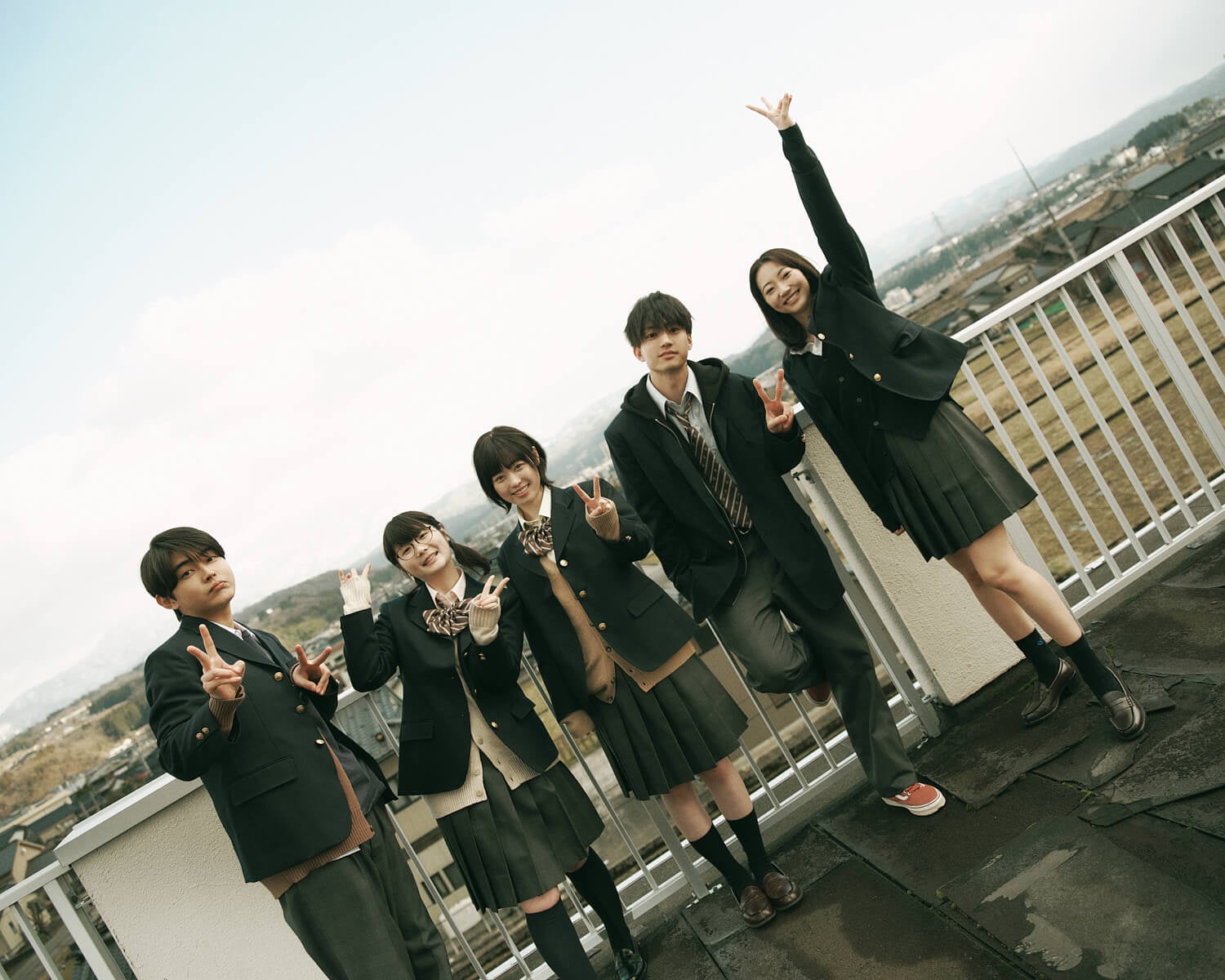 「初日の撮影を終えての感想」として、福原は「本当にいい空気ですね」と開口一番切り出すと、「衣装あわせだったり、顔合わせでもスタッフの皆さんとお会いさせていただいたのですが、皆さんすごく優しくてあったかい空気感で、フレンドリーではじめから居心地がよかったですし、キャストの皆さんも何人かご一緒していた方がいたので、あんまり緊張せずクランクインできたかなって思います」と順調に撮影がスタートしたことを明かしました。「この役のオファーを受けて/台本を読んでみての感想」として、小野は「学生時代から大人までの10年間ぐらいの長めの期間を演じさせていただくということで、楽しみ半面、高校生役まだできるかなとか、そういった具体的な不安半面」と、高校生役を演じることに対する素直な気持ちを話すと、伊藤も「まず、制服かー…っていう(笑)本当に久しぶりに制服を着たので、ちょっとワクワクもありつつ、大丈夫かな、なんて思いもありつつな感じではあった」と心境を吐露しつつ、「若い子たちがこの作品を見たときに、特に10代の中高生が感情移入できるキャラクターがいるんじゃないかなっていうのは思った」と時流を捉えた作品であることを強調しました。また、「本作への意気込み」として、倉は「(役どころが)人気者みたいなキャラクターなんですけど、(自身が)まったく人気があったことがないというか、あまり華々しい高校時代を送ってなかったので、それも新たな追体験として楽しみだなと思っています」と自身の学生時代を振り返ると、武田も「制服を着て群像劇っていうのもすごく久々なのでちょっとドキドキな部分はあるんですけれど、楽しみつついろんな経験ができればなと思います」と答えました。