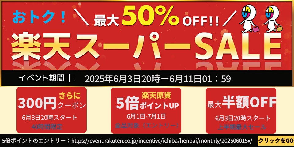 半額OFF+楽天原資5倍ポイント+300円クーポン利用可能