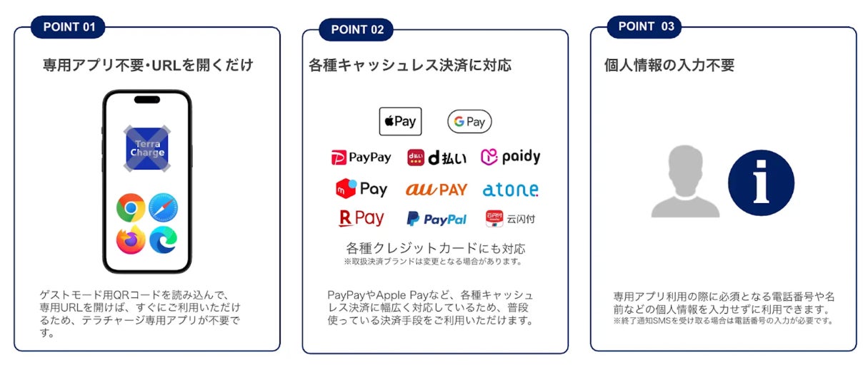 ※利用条件や対応時間などの詳細は、Terra Chargeアプリをご確認ください。