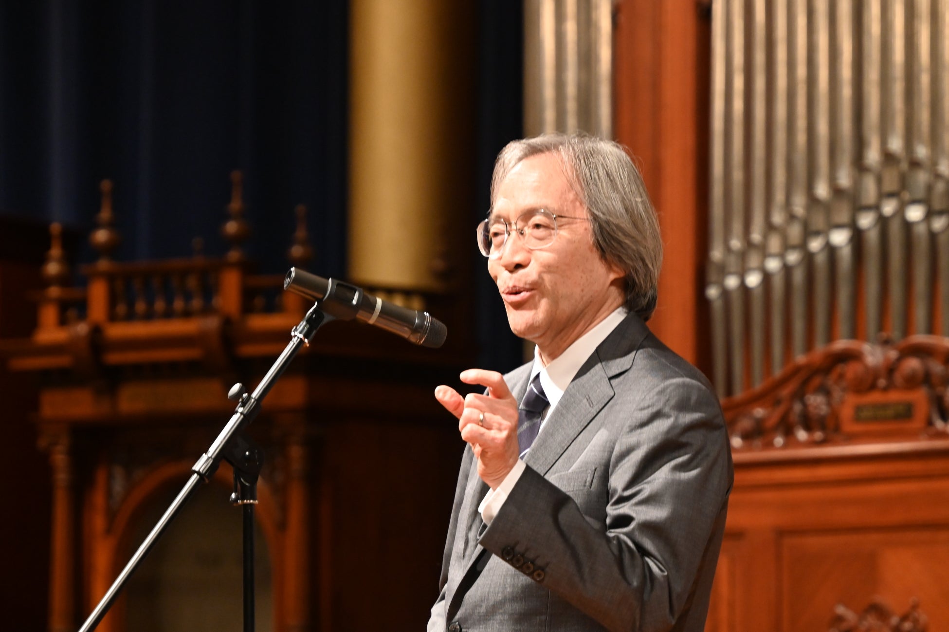 はじめに、富士五湖自然首都圏フォーラム会長の田坂広志氏がFuji California Young Artists Expo の趣旨を英語で説明しました。