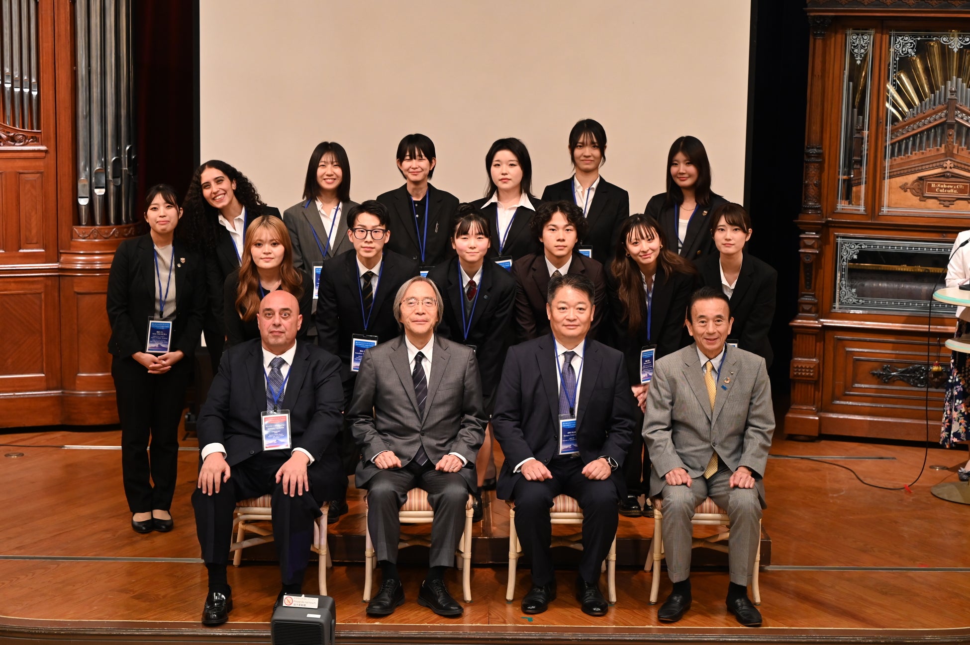 表彰式に続き、アートを通じて国際交流を行うアンバサダー任命式が行われました。全体で17人がアンバサダーに任命され、山梨県からは7名が選ばれました。選ばれたアンバサダーは、アートを通じた国際交流を目的に、世界的なアートシティである米国カリフォルニア州ラグナビーチ市や、学生文化の中心地アーバイン市へ派遣されます。現地では作品制作や多様な交流を通じて、国境を越えたつながりを深めます。