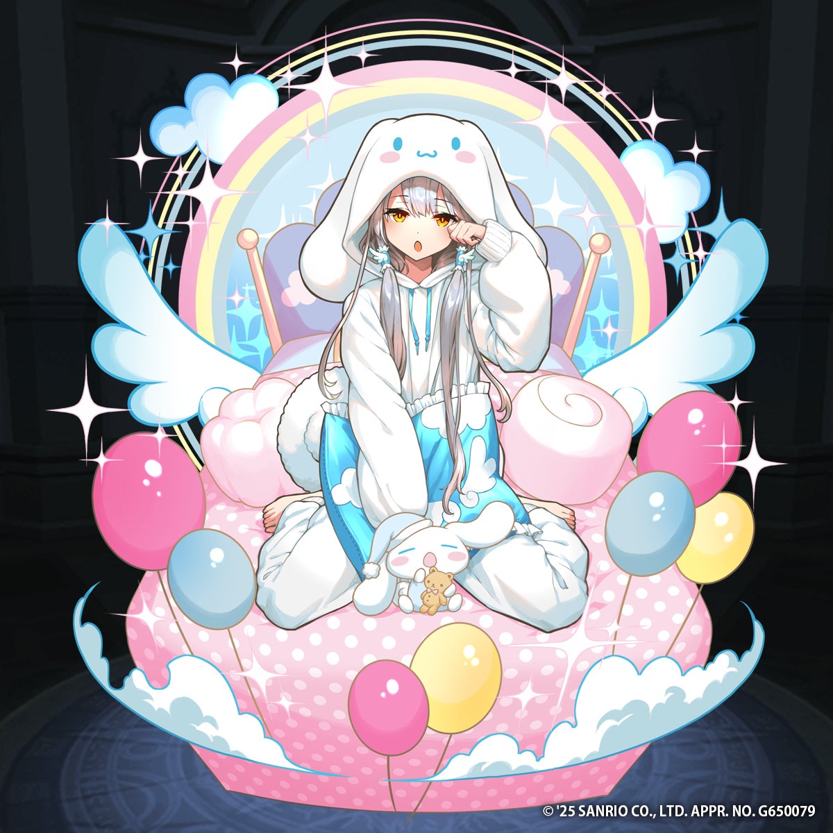 『シナモロール』は遠いお空の雲の上で生まれた、白いこいぬの男のコ。特技は、大きな耳をパタパタさせて、空を飛ぶこと。