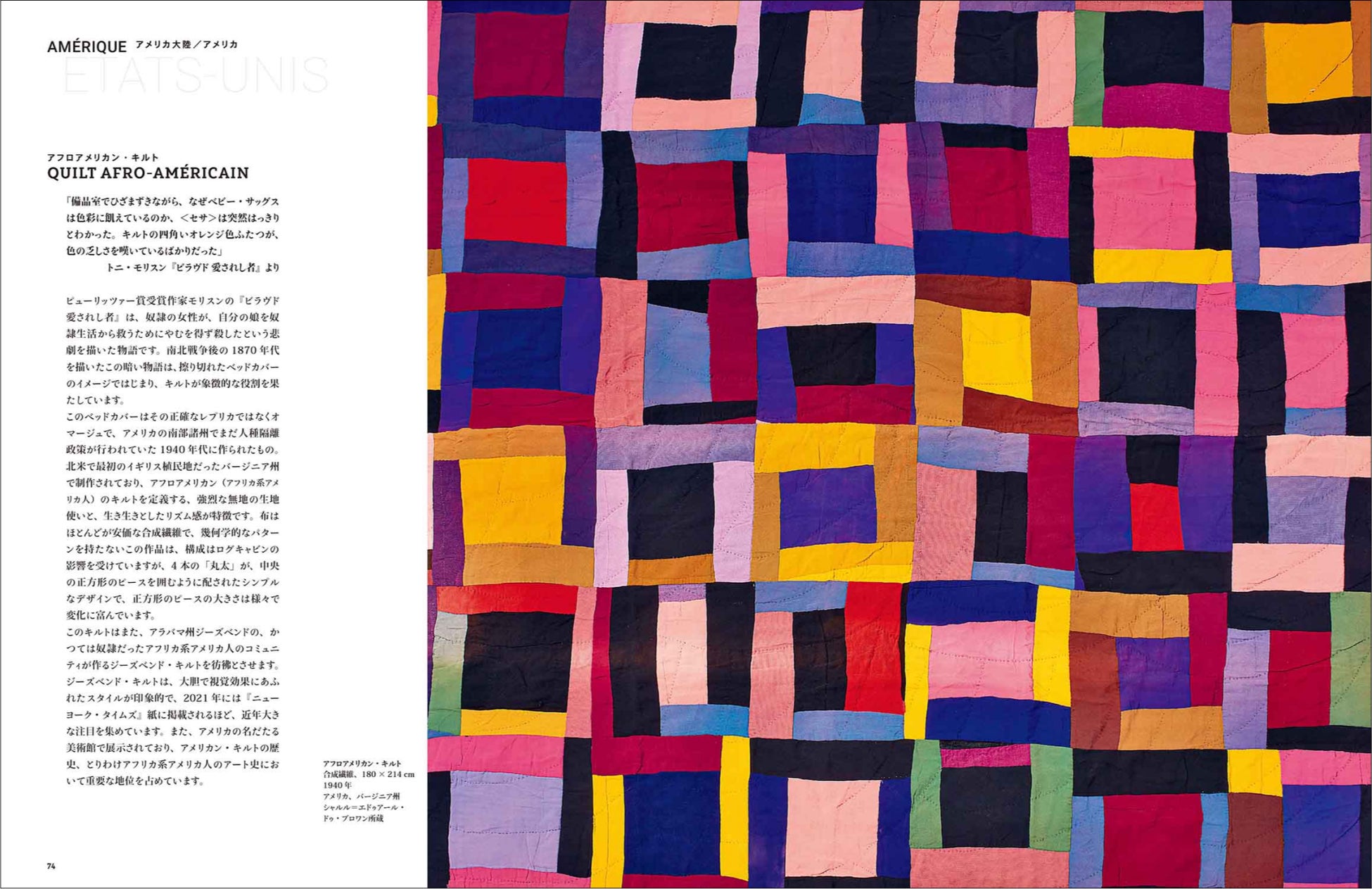 本書では、パッチワークの技法にはじまり、世界5地域33か国の作品群とその文化的背景を紹介。ヨーロッパにはじまり、アメリカ、アフリカ、アジアと、愛らしくも美しい針仕事をめぐる旅は、作り手たちの美意識に対するオマージュでもあります。パッチワークの多様性が紐解かれ、インスピレーションの源となることでしょう。
