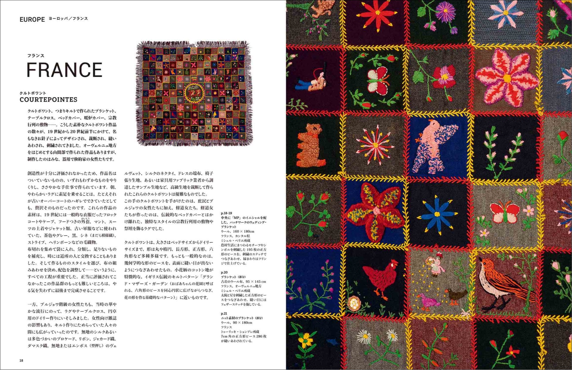パッチワークとは/パッチワークの技法/ヨーロッパ フランス イギリス スウェーデン ハンガリー オランダ/アメリカ大陸 アメリカ カナダ メキシコ パナマ ペルー/アフリカ& 中東 ナミビア ナイジェリア ベナン マリ ガーナ コンゴ カメルーン スーダン モーリタニア エジプト イラン シリア パレスチナ/アジア インド インド&パキスタン ウズベキスタン トルクメニスタン キルギス 韓国 日本 ベトナム ラオス ベトナム&ラオス ベトナム&中国 中国 中国&フランス