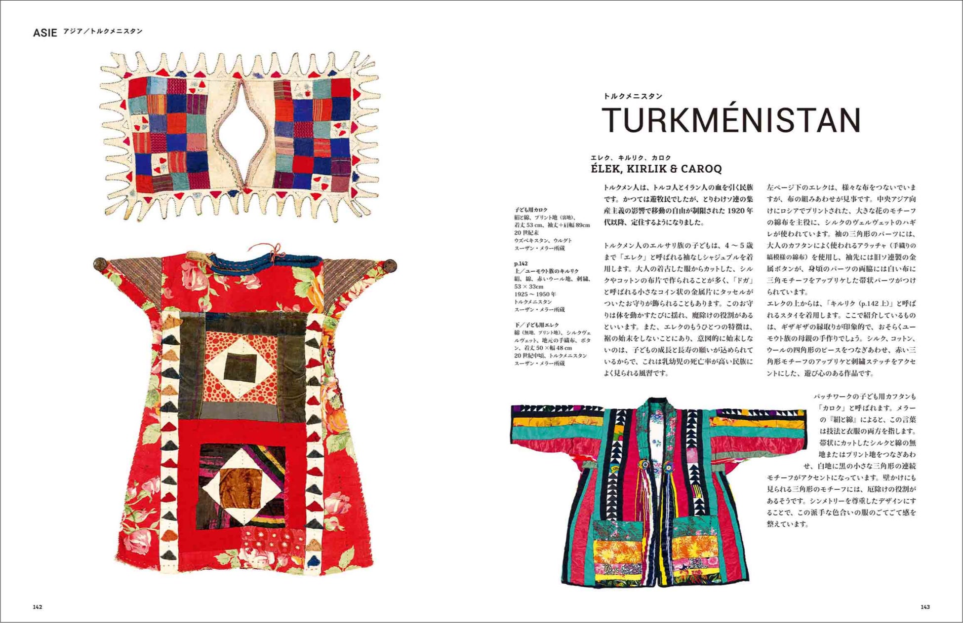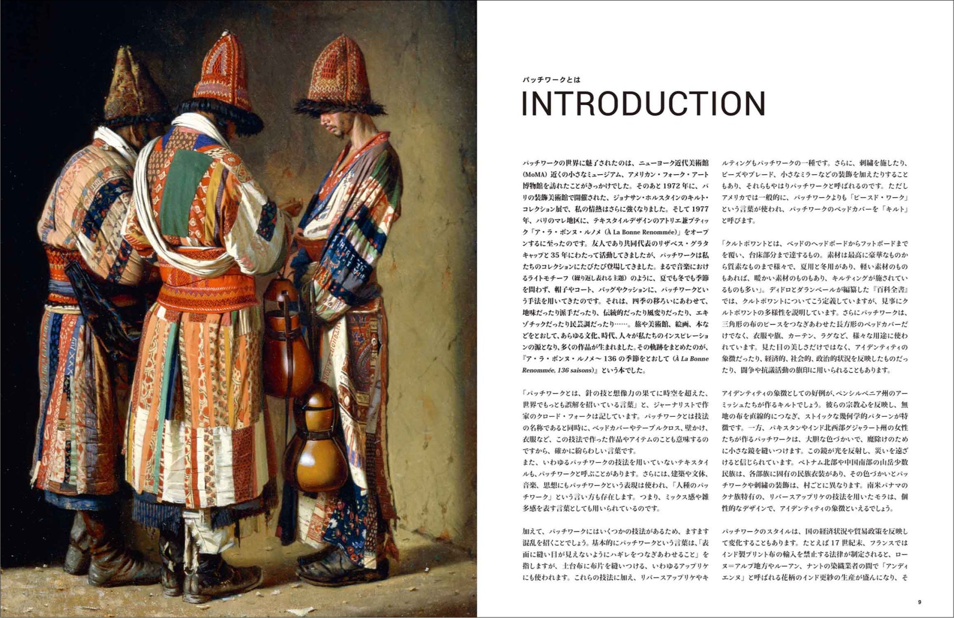 フランスのクルトポワント、メキシコのファルダ、パナマのモラ、カメルーンのドプ、コンゴのンチャク、シリアのダラア、インドのカンタ、トルクメニスタンのエレク、日本のどんざ……。これらはパッチワークが紡ぎ出す布の芸術品であり、パッチワークのバリエーションの豊かさを物語るものです。
