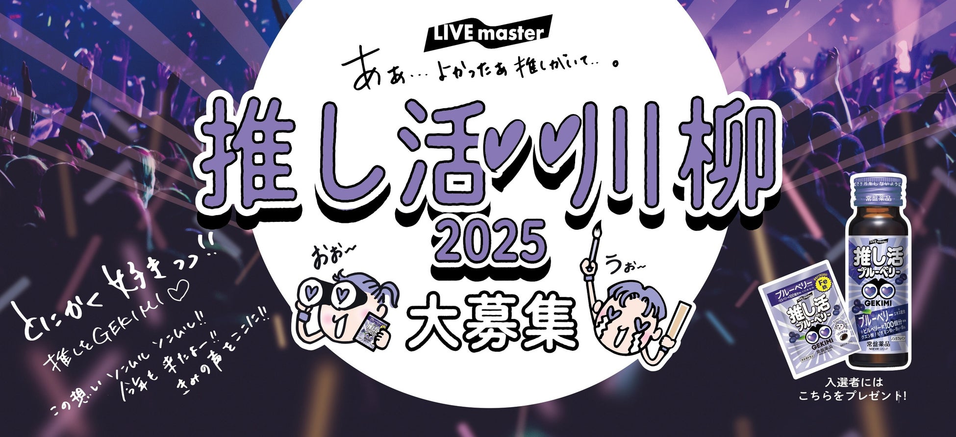 自分にとってイチオシの人物やキャラクター(=推し)をさまざまな形で応援し、情熱を注ぐ活動である【推し活】。推し活の特別な時間をより良い時間へ後押しする『LIVE master』は、今年も推し活に関連するエピソードや推しへの思いなどを川柳で募集いたします。第1回大会となった昨年は約1,000件のご応募をいただき、多彩な作品が集まりました。ぜひ、今年も皆様の推し活事情を川柳でお聞かせください。入選作品はブランドサイト等で発表します。