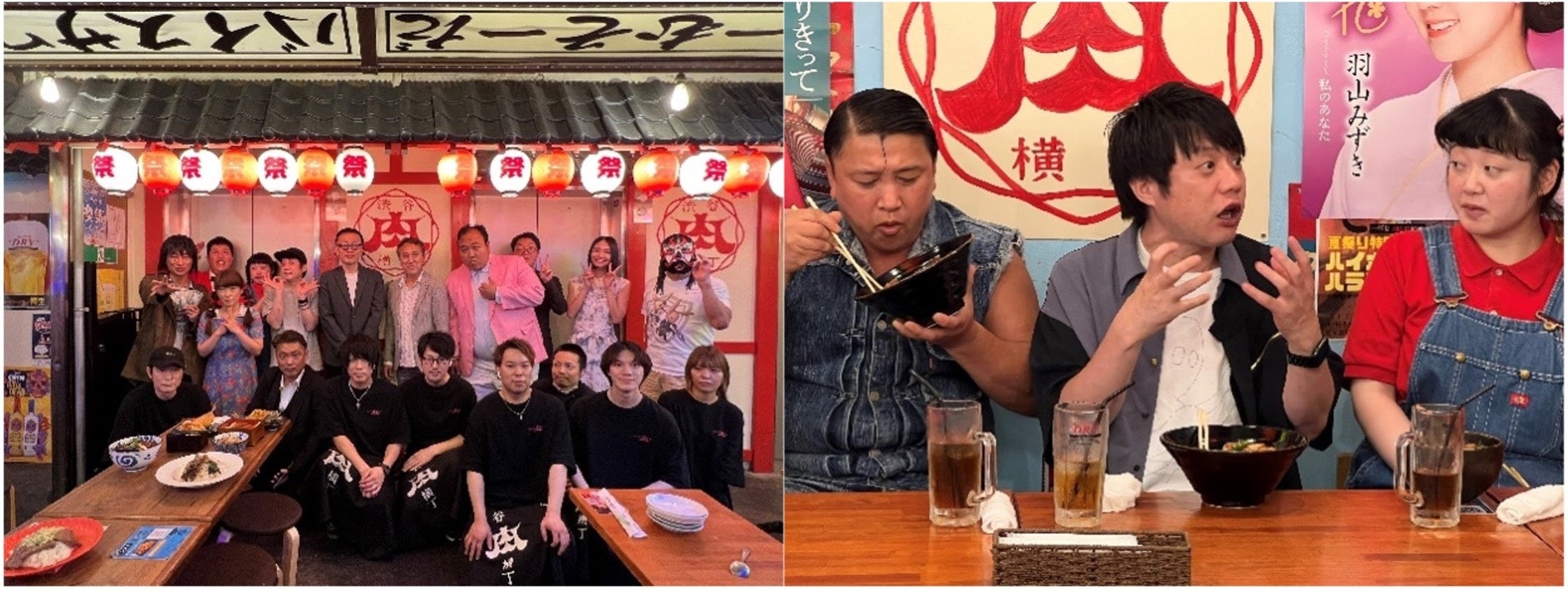 3. 2023年5月からサンミュージックグループのテレビでお馴染みの有名タレント・著名芸人約30名と何度も試行錯誤を重ねて完成した,絶品肉コラボメニューをこの夏,渋谷肉横丁内の居酒屋サンミュージックにて期間限定販売致します。今回販売するコラボ商品(下記参照)は,日本各地から厳選された肉に纏わる,多種多様な食材を使用したコラボ商品になっております。コラボメニューの決定に際し,複数回に渡る試食会を実施しサンミュージックグループ内の食にこだわりのあるタレント・芸人でランキングを付けた上位の4商品とサンミュージックオリジナルメニュー10品とオリジナルドリンクを提供致します。また,特別に毎週1回,居酒屋サンミュージックで,有名芸人による漫才ショーを実施します。あのM1グランプリ上位入賞した芸人も漫才ショー開催が決定しております。サンミュージックグループと渋谷肉横丁のコラボということで,各社メディアからも,大変多くの反響を頂いております。