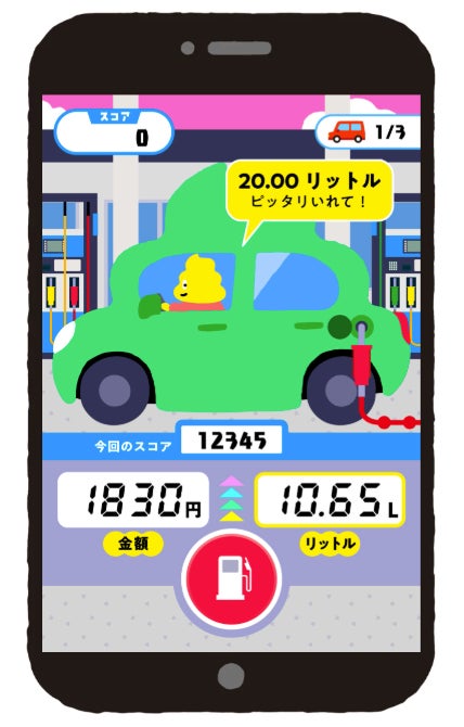 といった注文に対して、給油ボタンを操作します。指定された数値に近いほど高得点となり、入れすぎてしまうと0点になる仕組みで、ギリギリを狙うドキドキ感を楽しみながらプレイできます。遊びながら、ガソリンスタンドの仕事やエネルギーを支える現場への理解を深められる内容となっています。