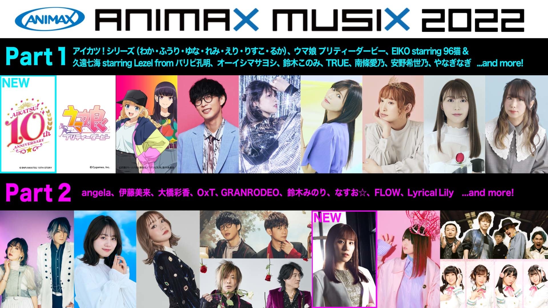 アイカツ!シリーズ(わか・ふうり・ゆな・れみ・えり・りすこ・るか)、ウマ娘 プリティーダービー、EIKO starring 96猫 & 久遠七海 starring Lezel from パリピ孔明、オーイシマサヨシ、鈴木このみ、TRUE、南條愛乃、安野希世乃、やなぎなぎ …and more!
