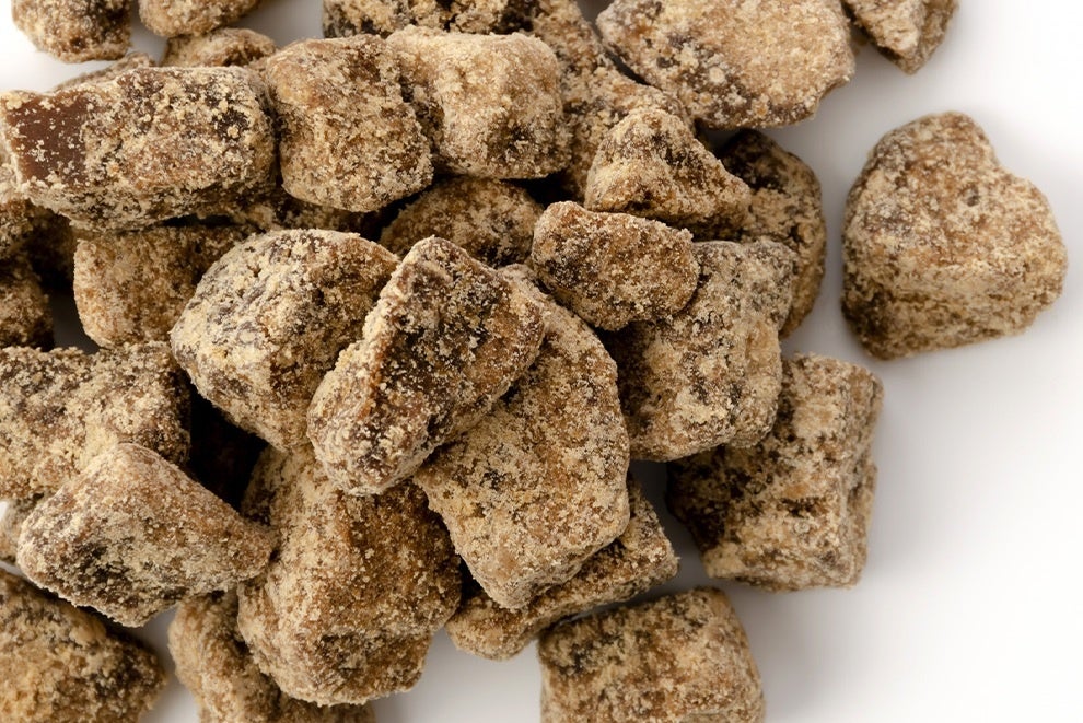 沖縄県粟国島産の純黒糖とは、サトウキビの搾り汁のみを煮詰めてつくられる無精製の黒糖です。ミネラルを含みながら、えぐみや苦味が少なく滑らかな甘みが特長で、焼き菓子やチョコレートとの相性にも優れています。